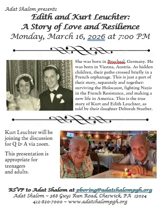 Join Board Member Debbie Stueber as she presents the story of her parents’ experiences during the Holocaust and beyond. Her father, Kurt Leuchter, is scheduled to join the group via zoom for Questions and Answers at the end of the program.