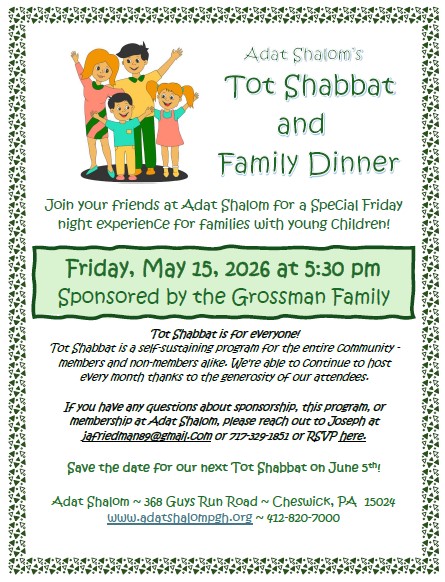 Adat Shalom is once again offering Giant Eagle Gift Cards to benefit the synagogue. Adat will receive 2% of the price of each gift card. CLICK HERE for more information.