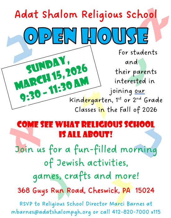 RSVP to Religious School Director Marci Barnes at mbarnes@adatshalompgh.org